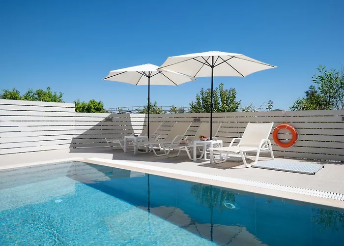 هذه الفيلا ذات مساحة 100 م^2 حيث تبعد 15 كم من مطار كورفو الدولي. الضيوف المقيمين في هذه البناية يملكون غرفة الجلوس المشتركة. ايضاً توفر المسبح وكذلك بركة سباحة خارجية وكراسي للتمدد وحديقة.